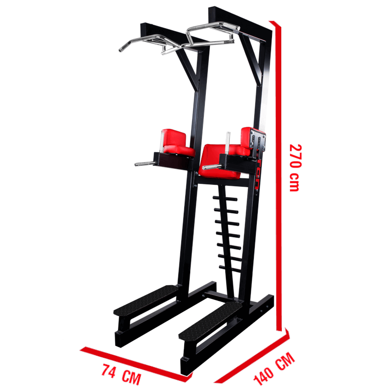 Ponadto na poręczy znajduje się drabinka, dzięki której do konstrukcji można przymocować ławkę rzymską. Wszystko to sprawia, że poręcz PD1 jest wszechstronnym przyrządem do ćwiczenia mięśni grzbietu, ramion i brzucha. Boczne oparcia łokci w poręczy wykonane są z grubej tapicerki. Dlatego unoszenie nóg w podporze jest wygodne i komfortowe dla pleców i ramion.